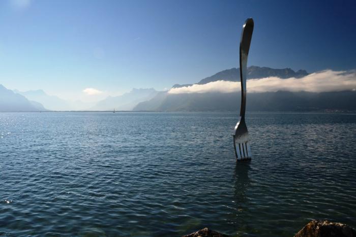 Очень понравилась заглавная фотка. Вилка, что бы она там на самом деле не символизировала, теперь для меня ассоциируется с «вкусной» частью отчета о Европе. Вот, мол, вам еще и Женевское озеро на закуску! =)
