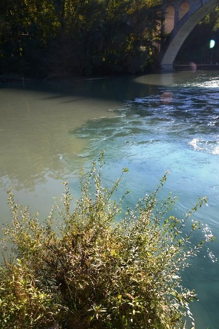 Спасибо огромное тому человеку, кто это написал, но «тенистая аллея» оказалась жутким местом в самом жутком районе, который мне довелось увидеть в Швейцарии. Это такой негритянско-арабский квартал, разбитый, раздолбанный, с колючей проволокой, мусором, и прочая, и прочая. Местные обитатели тусили кучками вдоль берега, стояли какие-то бандуры магнитофонные, подростки устраивали танцевальные баттлы под агрессивный французский рэп… На нас посматривали с нескрываемым любопытством. Ужас! Мне было настолько не по себе, что ни о каком фотографировании речи и не шло.