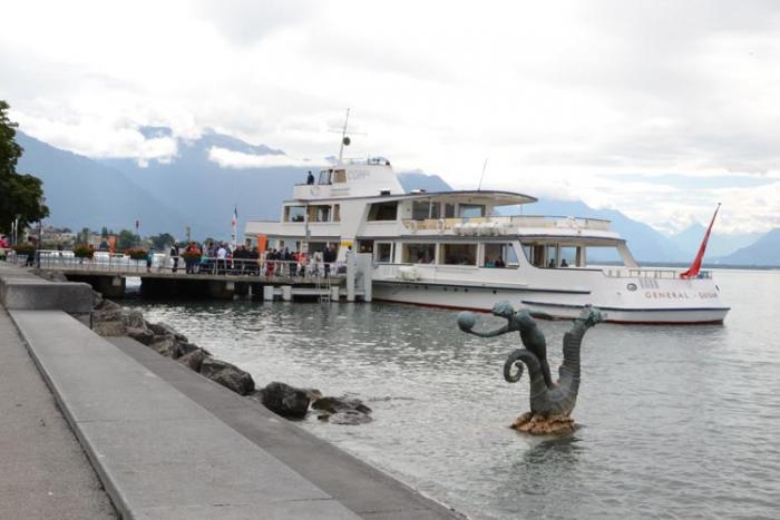 Прогноз упорно говорил о дождях, посещение Монтре и Веве совместили в один день. Опять же посещали известные места. Прогуливались по набережной озера, почему -то напоминало приморские городки, но купающихся не было видно, пляжи расположены вдалеке от центра. Поэтому не увидели отдыхающих, бредущих с надувными матрацами в руках. А на центральной площади Веве стояли шезлонги, это создавало неповторимую расслабленную обстановку.