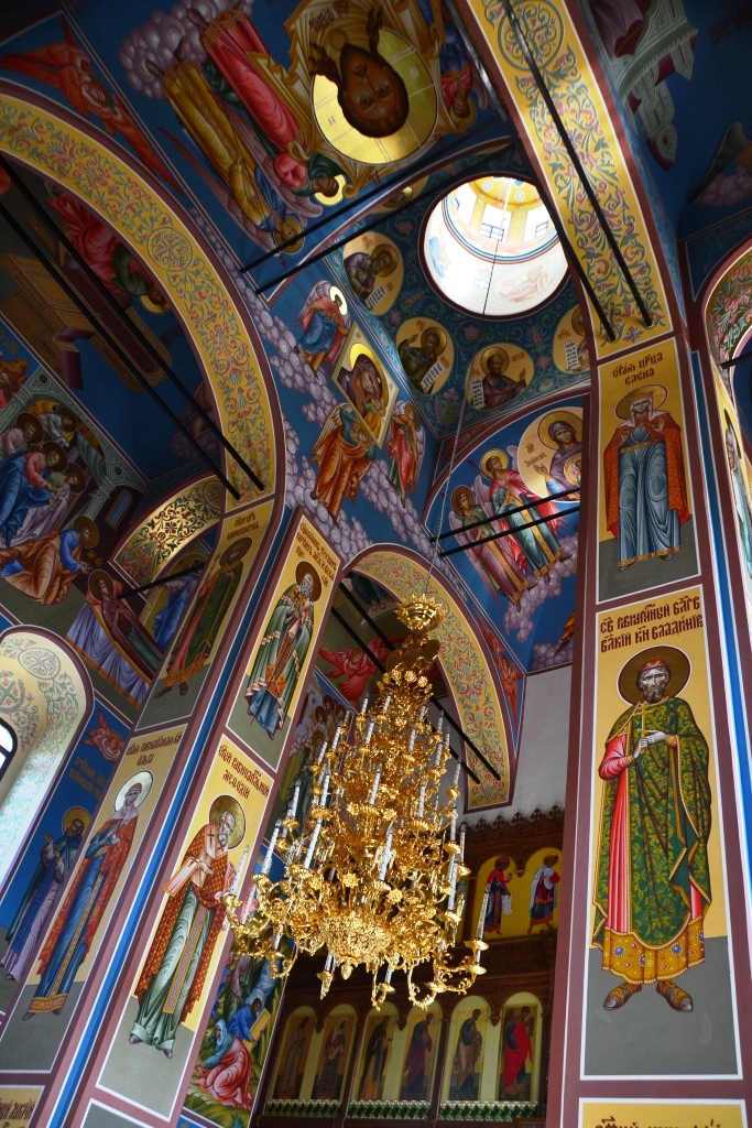 Внутри никого не было, так что можно было спокойно осмотреться. Зная историю монастыря, становится понятна современная роспись стен, алтарь, только одна икона была здесь как послание из глубины веков: в массивном металлическом окладе.