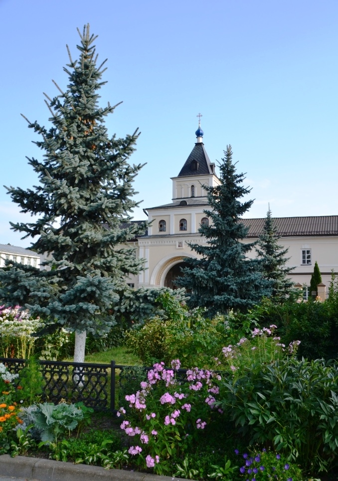 Первое впечатление, которое получаешь, вступив на монастырскую территорию, — это сад. Цветущий Эдем. Вдоль главной «улицы» напротив друг друга расположено несколько церквей. Так вот левая сторона – это сплошное утопание в цветах и зелени. Даже не верится, что когда начинались восстановительные работы в обители в конце 1980-х, заросли крапивы и бурьяна были выше человеческого роста. Сложно представить, что в годы советской власти здесь чего только не было – включая концлагерь для заключенных-поляков: более четырех тысяч польских военных отсюда были отправлены в Катынь. Сейчас в эту страницу истории монастыря невозможно поверить.