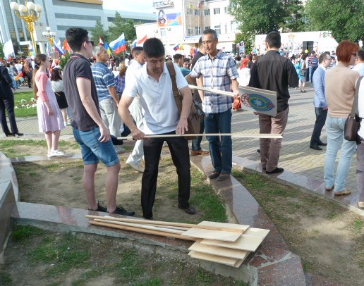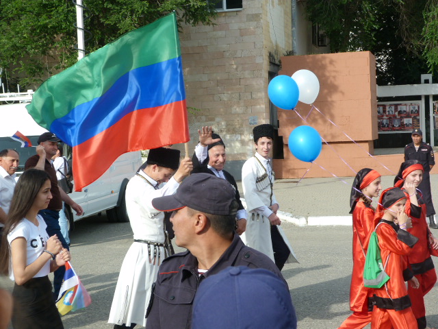 Особенно активно на празднике выступали дагестанцы. Многие из участников парада, закончив выступление, деловито складывали взятые на время флаги, плакаты и национальную атрибутику.