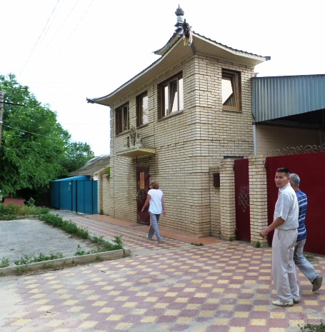 Однако на службу мы остаться не смогли, т.к. Эдуард попросил меня выступить в другой церковной общине, куда он с семьей обычно ходит. Среди ее прихожан гораздо больше калмыков, и даже в крыше строящегося нового здания отчетливо видны мотивы «национального калмыцкого жилища»: