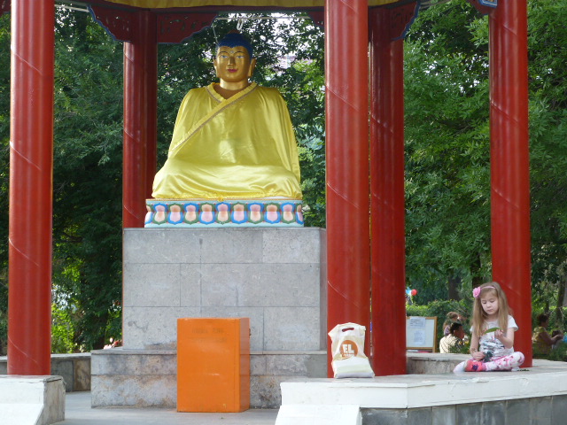 Мы на майские ездили в Элисту, хурул ребёнку показать. Ничего, что-то объяснили, что-то интереса не вызвало… :)