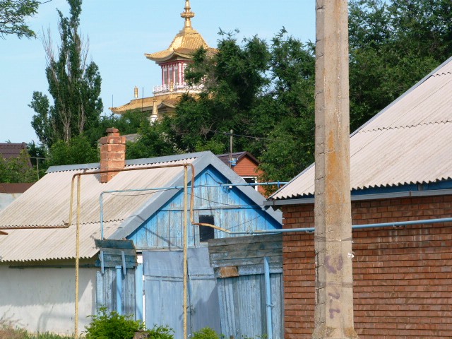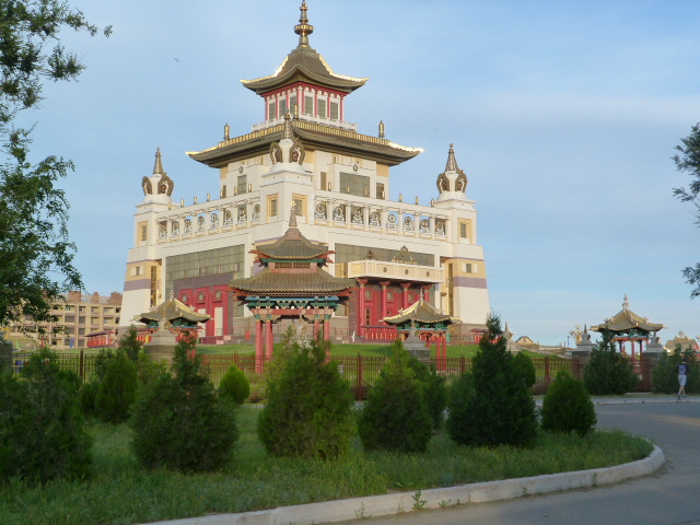 Миновав центральную площадь, мы продолжили свой путь к самой известной из новодельных достопримечательностей города-ребенка Элисты. С 90-х годов местные власти активно возрождают и пропагандируют в Калмыкии буддизм, в котором видят национальные культурные корни народа.