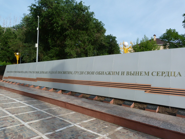 Закончили мы прогулку в эту сторону возле военных памятников. Калмыки с давних пор участвовали в войнах, которые вела Россия. Случались, конечно, и конфликты, в которых кочевники грабили русские поселения, но, в основном, они охотно становились отдельной и очень боеспособной частью царской армии. Местные патриоты, тот же Эдуард, во всем видят калмыцкие или монгольские корни. В частности, они убеждены, что в происхождении клича «Ура!» тоже их соотечественники отметились. Мол, в армии Петра I кричали «виват!», но под Полтавой калмыцкие отряды спасли самого царя от окружения шведами, и царь приказал принять на вооружение их боевой клич. Ну, в википедии версии другие, но точного происхождения клича никто не знает, а у монголов он, и правда, с древних времен присутствовал. Все может быть. В любом случае, показательное предание.