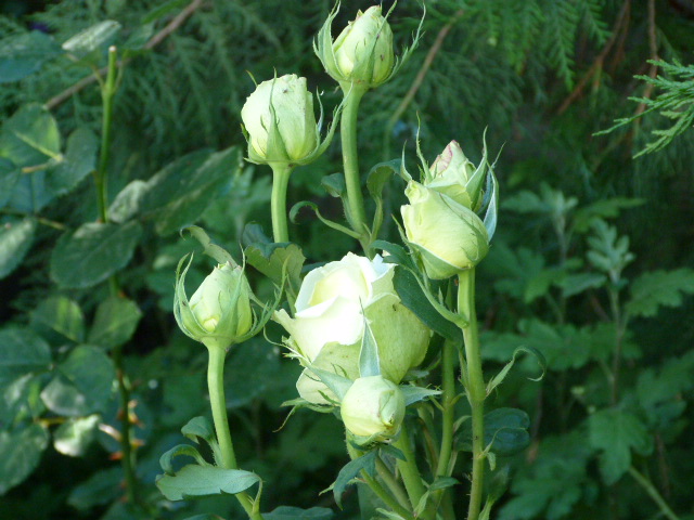 Особенно наша хозяйка радовалась тому, что ей здесь удалось вырастить редкие «зеленые» розы. На мой-то взгляд, зеленые — значит еще не созрели. ;) Но знающие люди восхищенно ахали.