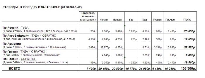 Бюджет путешествия можно посмотреть в таблице: