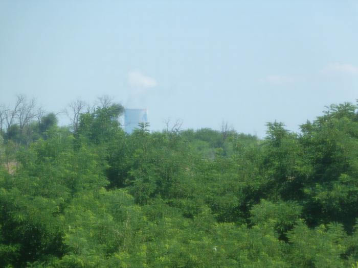 Нам снова пора в путь. Но краем глаза удалось все же увидеть то, что во многом послужило причиной появления и роста Волгодонска. Этот очень молодой город был создан для обслуживания гидроузла, а бурный рост был связан с атомной промышленностью и строительством АЭС. В окна второго этажа можно было разглядеть строения электростанции, а в самом городе мы заметили памятник мирному атому.