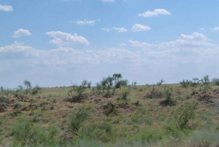 Один за другим проезжаем три КПП, где нас вновь регистрируют — теперь как убывающих из республики. В 13:40, после третьего КПП в 210 км от Хасавюрта, мы покинули Дагестан и въехали в Калмыкию. Снова степь да степь кругом…