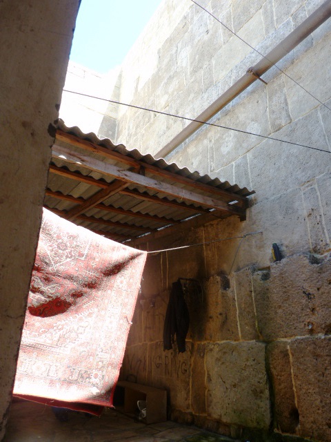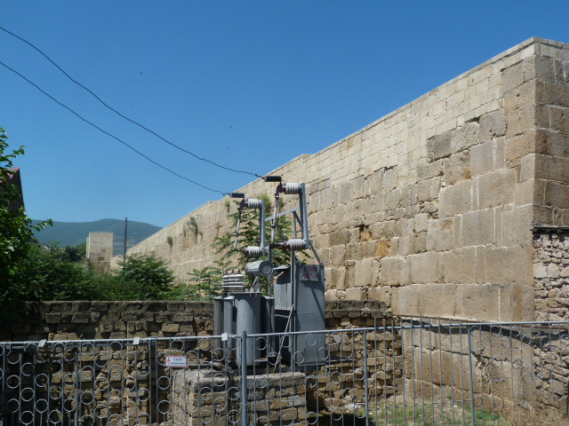 Среди работников был и подошедший хозяин заведения, который принялся расспрашивать нас о нашей поездке и впечатлениях. Затем он предложил мне пройти через мойку на ее задний двор. И там, на заднем дворе я с изумлением обнаружил крепостную стену. Одну из двух, что идут от крепости вниз, к морю (а раньше и в само море метров на 500 уходили). Не в том дело, что стена очень уж впечатляющая. Просто обычно я специально иду искать фортификационные сооружения, маршруты к ним прокладываю. Чтобы вот так, запросто, за гараж зайти…