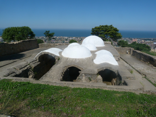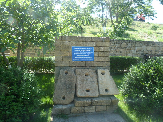 Ладно, подскажу, якоря это. Все же когда-то тут был один из самых популярных портов Каспия. И флотилия Петра I в этой гавани тоже стояла, пока местные правители не преподнесли русскому царю ключики от города. Впрочем, ключи Петр где-то посеял, и окончательно под власть империи дербентский хан перешел только 100 лет спустя. А до этого вершил тут суд и расправу.