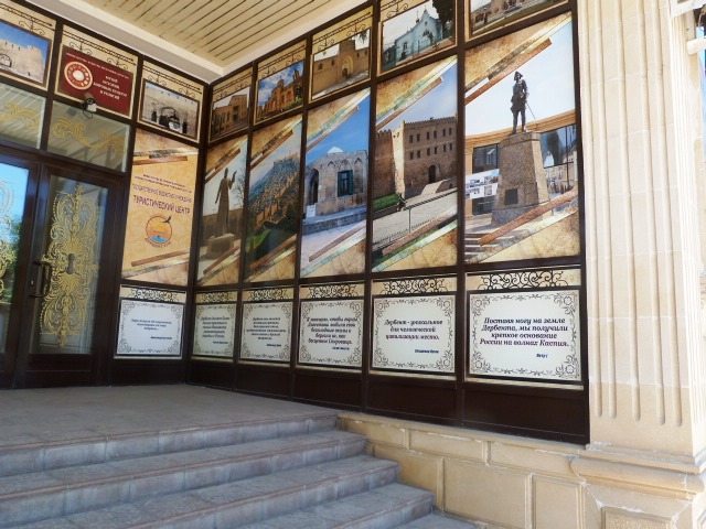 Ну и там же, в центре города, турбюро, щедро украшенное стихами и цитатами про Дербент писателей и поэтов с древних времен и до наших дней.