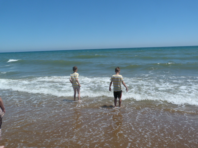 Пляж, правда, оказался по другую сторону небольшой речки, но наши дети с радостью готовы были идти в брод. К счастью, нас вовремя остановили. Какой-то сердобольный местный житель, рискуя жизнью, кинулся с высокого берега за нами, чтобы предупредить, что соваться в речку нельзя ни в коем случае. В нее сливают и канализацию, и промышленные отходы. Можно мутировать, еще не дойдя до берега. :(
