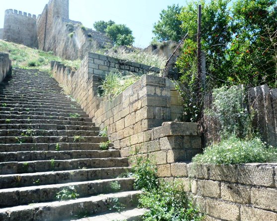Вскоре, улица переходит в лестницу, взмывающую к крепости.