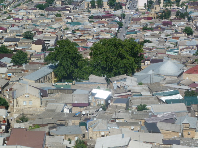 Так застроена только старая арабо-персидская часть города, располагающаяся под стенами крепости. Равнинная же часть, застраивалась в 20-е годы 19 века под руководством генерала Ермолова прямоугольной сеткой. Различия застройки хорошо видны со стен крепости.
