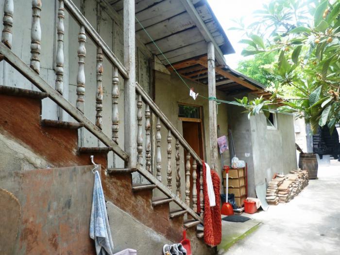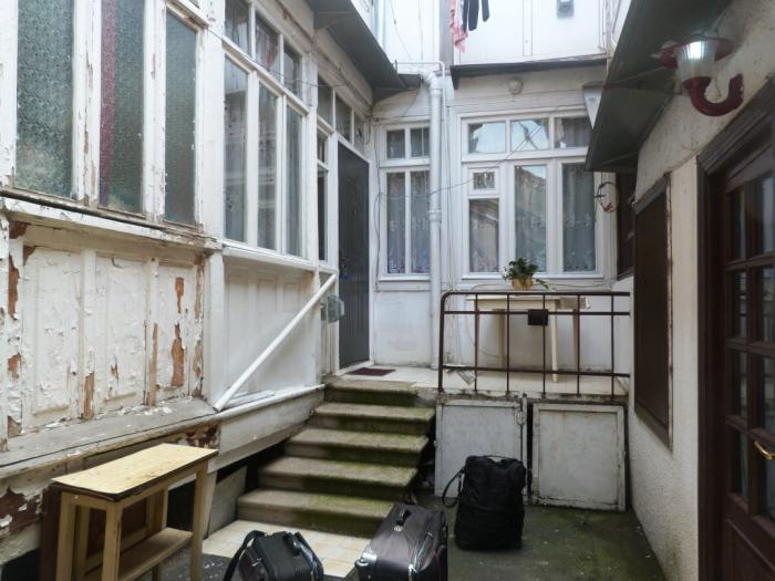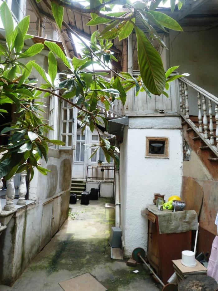 Наше изучение столицы началось (ну, если не считать долгих блужданий по всему городу накануне вечером) с места ночлега. Этот , забронированный через booking, был, по сути, двухкомнатной квартирой с отдельным входом. Заплатили мы за ночь 70 лари (2100 руб.) Не могу сказать, что место было очень уж комфортным… Комнаты достаточно большие, а вот кухонька крошечная, с трудом повернуться можно. Но много ли нужно для ночевки на одну ночь? Зато двор был каким-то… очень тбилисским. Обшарпанным, но очень романтичным. Где еще такое увидишь прямо в центре города?!