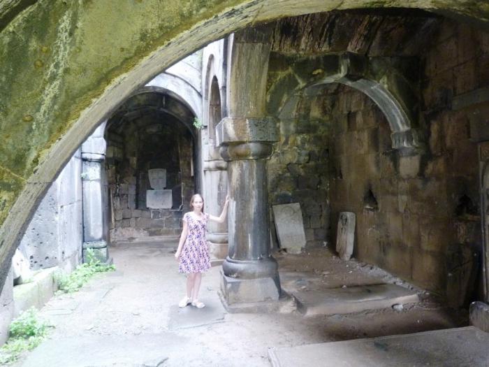 В 17:10, проехав 40 км от границы, по указателю сворачиваем с магистрали и карабкаемся вверх к монастырю Ахпат (Haghpat). Ему уже больше 1000 лет, часть зданий сохранились с тех времен, некоторые были достроены или существенно перестроены в XIII веке. Монастырь считается действующим, хотя мы там никого, кроме пары случайных туристов, не заметили. Зато там очень приятно побродить по запутанным, соединяющимся постройкам и пристройкам (гавит или пристройка к храму в монастыре Ахпат — больше, чем сам храм).