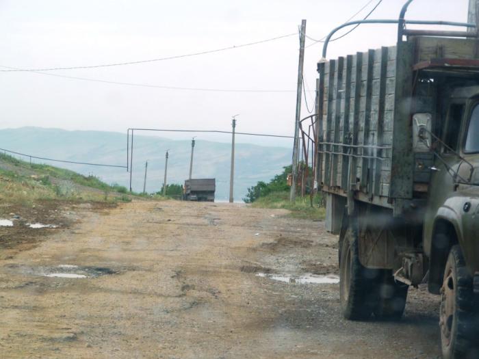 Осторожно пробираемся по разбитым дорогам севера Армении. Завидев указатель на источник, делаем остановку, чтобы набрать воды. Здесь можно с легкостью проиллюстрировать тот контраст, о котором я упоминал выше. Это — дорога: