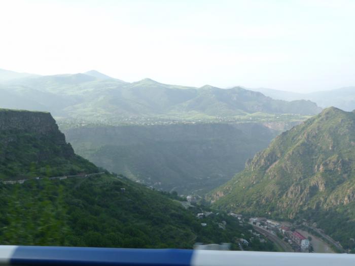 Тут мы провели меньше получаса. И снова в путь, в сторону Еревана, мимо зеленых вершин, пропастей и каньонов.