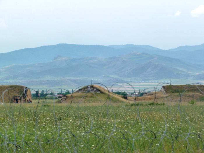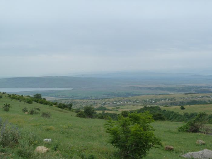 В 14:35 в Марнеули выезжаем на развилку дорог, ведущих в Армению. Некоторые путешественники рекомендуют туда ехать одним путем, обратно другим. Считается, что на одном — живописная, но разбитая грузинская дорога и хорошего качества, но скучноватая — армянская. А на другом — наоборот. Мы пока еще планируем обратно выезжать вообще не к Тбилиси, а в сторону Ахалцихе. Поэтому живописные армянские места пропустить не хотим.