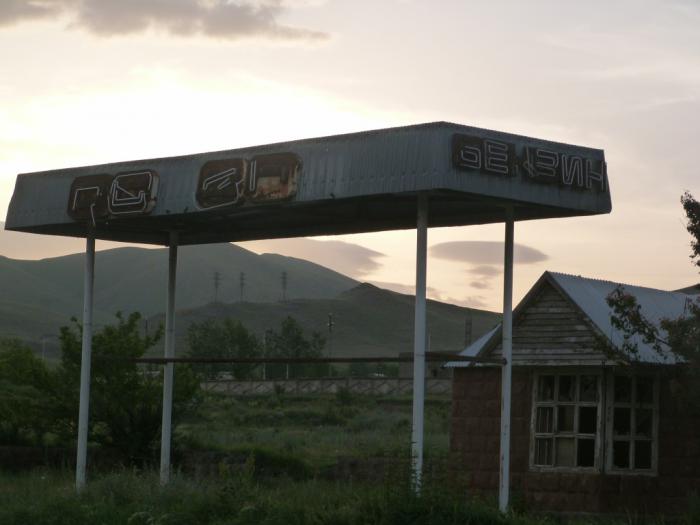 Места пустынные, со своим немного грустным очарованием. Встречаем кое-где и вывески на русском, не то осколки советского прошлого, не то результат крепких союзнических отношений между современной Россией и Арменией. Впрочем, эта бензоколонка вряд ли смогла бы послужить хорошим символом сотрудничества двух стран: