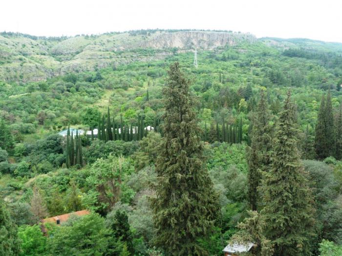 Но увы, сами так и не поняли, как это делается. Все дорожки, которые вели к крепости, приводили на очередную смотровую площадку рядом с ней. Вот и разгадка, почему армии врагов не могли захватить крепость Наринкала! Просто дорогу найти не сумели. :) Зато, с одной из обнаруженных смотровых площадок мы полюбовались Ботаническим садом, который начинается по другую сторону холма. Оценить разнообразие представленной флоры издалека — сложно. Уверен, погулять там приятно, говорят и небольшие водопадики имеются. Впрочем, Ботанический сад в Батуми хвалят больше. Но разительный контраст этих джунглей с городскими видами в другую сторону — очень впечатляет.