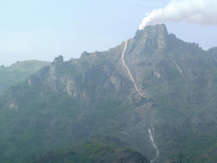 Город Алаверди, кроме нескольких знаменитых монастырей и храмов в окрестностях, известен как место производства меди с XIII века. Может, именно это и воспринималось как дар от Бога тогдашними властителями этих мест. Потом медь тут добывали и обогащали греки, французы, а в советское время построили большой комбинат, который и сейчас обеспечивает работой большую часть населения. Комбинат этот не заметить невозможно. Его безобразные здания формируют совершенно жуткий облик города. Но к нашему удивлению, труба комбината не дымила, зато отчаянно дымила гора, находившаяся за поселком.