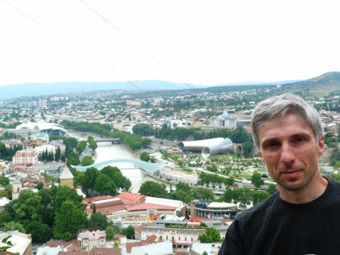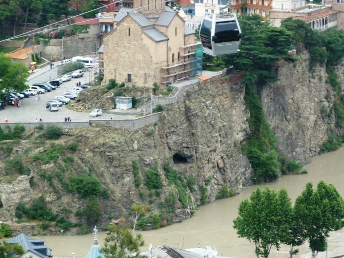 Город Тбилиси протянулся на 30 км вдоль текущей по своего рода ущелью или котловине реки Куры (она же Мтквари). Наше внимание не могли не привлечь совершенно замечательно вписанные в сложный ландшафт современные и древние дома.