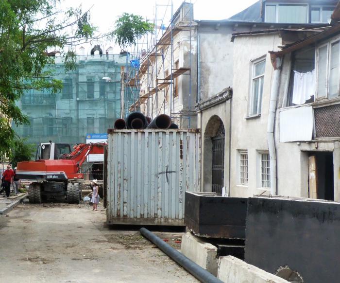Улица Sundukiani, которую мы с таким трудом искали накануне, была полностью разгромлена ремонтными работами. Здесь перекладывали канализацию, по словам соседа — уже не первый месяц, и местные жители, похоже, уже свыклись с необходимостью перепрыгивать через канавы и рвы по дороге к проспекту.