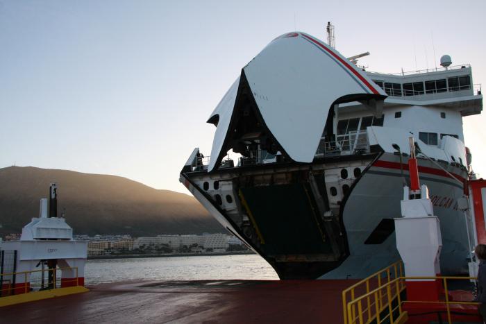 Это может сделать лишь один корабль. Называется он FRED OLSEN. Также перевозит пассажиров и технику.