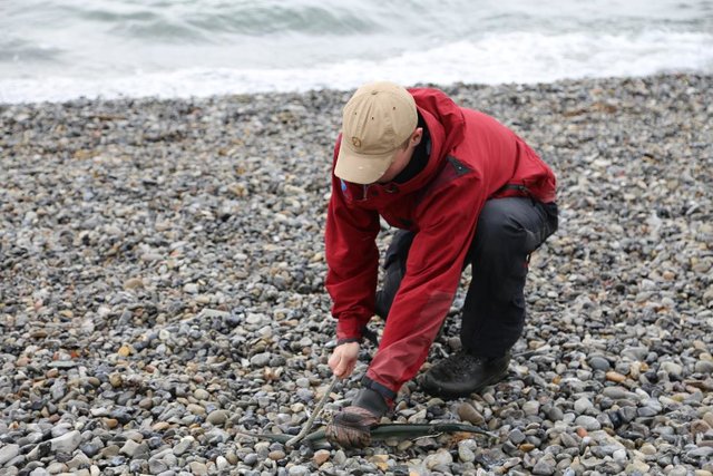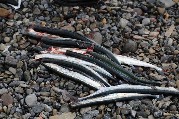Рядом с нами малыш лет пяти не смог ломиком проломить рыбе голову, и отец взяв этот ломик, наверное в очередной раз показал сыну как надо делать. Сильным ударом куском арматуры чуть ниже рыбьей головы.