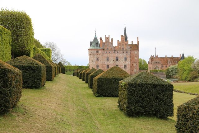 Сегодня Копенгаген, но по дороге к нему у нас заезды в несколько замков. Начинаем с Замка Егесков, это как бы не просто замок это целый комплекс музеев, огромный и очень ухоженный парк, по которому на каждом углу мелькают павлины, и много забавных скульптур.