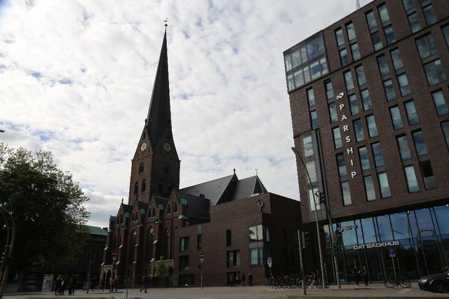 В Гамбурге сразу пять храмов которые входят в список высочайших церквей Мира. Ни один другой город ни чем подобным похвастать не может. Правда застройка довольно плотная, и нет эффекта наблюдать их величие стоя немного поодаль. А когда стоишь под ними, да невероятно, но они не вмещаются.