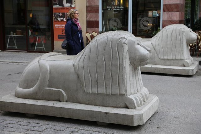 Пешеходная улица наверное километра три в длину, из новых районов в Гамластан. Она напоминает о себе большими каменными львами, что лежат по всей её длине возле каждого перекрестка.