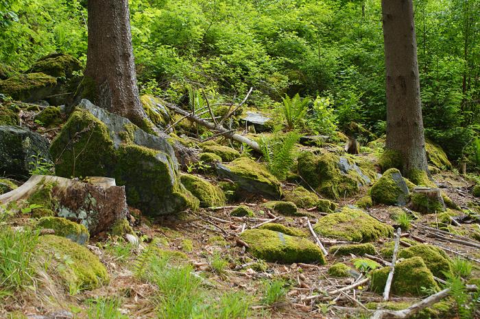 Камни поросшие мхом делают лес совершенно фантастическим!