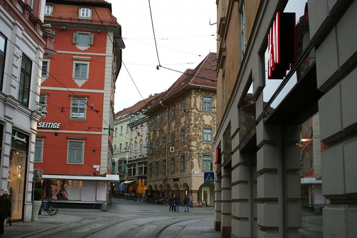 Грац встретил нас дождем. Видимо, погода сказалась на нашем впечатлении от города, и он нам показался мрачноватым. Австрийские цены на продукты тоже сделали свое дело. Одно яйцо здесь стоило как десяток яиц из московского Ашана! Жаль, мы не запаслись заранее продуктами из Польши! Но хотя бы сэкономили на парковке — по воскресеньям она бесплатная.
