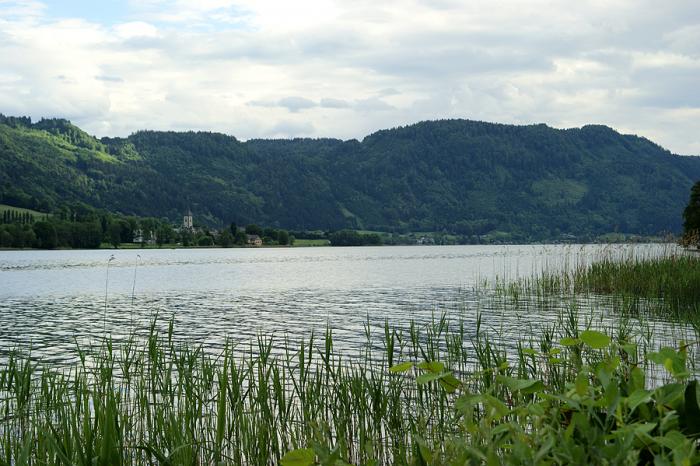 Не смотря на усталость после осмотра замков решили в тот же день заехать на озеро Оссиахер, расположенное в тех же краях. И снова как и с Вертезее нас ждало некоторое разочарование. На этот раз возникли проблемы с парковкой — кругом частная собственность. Да и подход к озеру нашли не сразу.