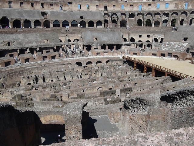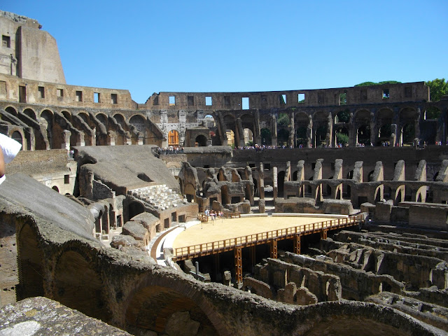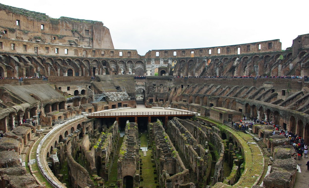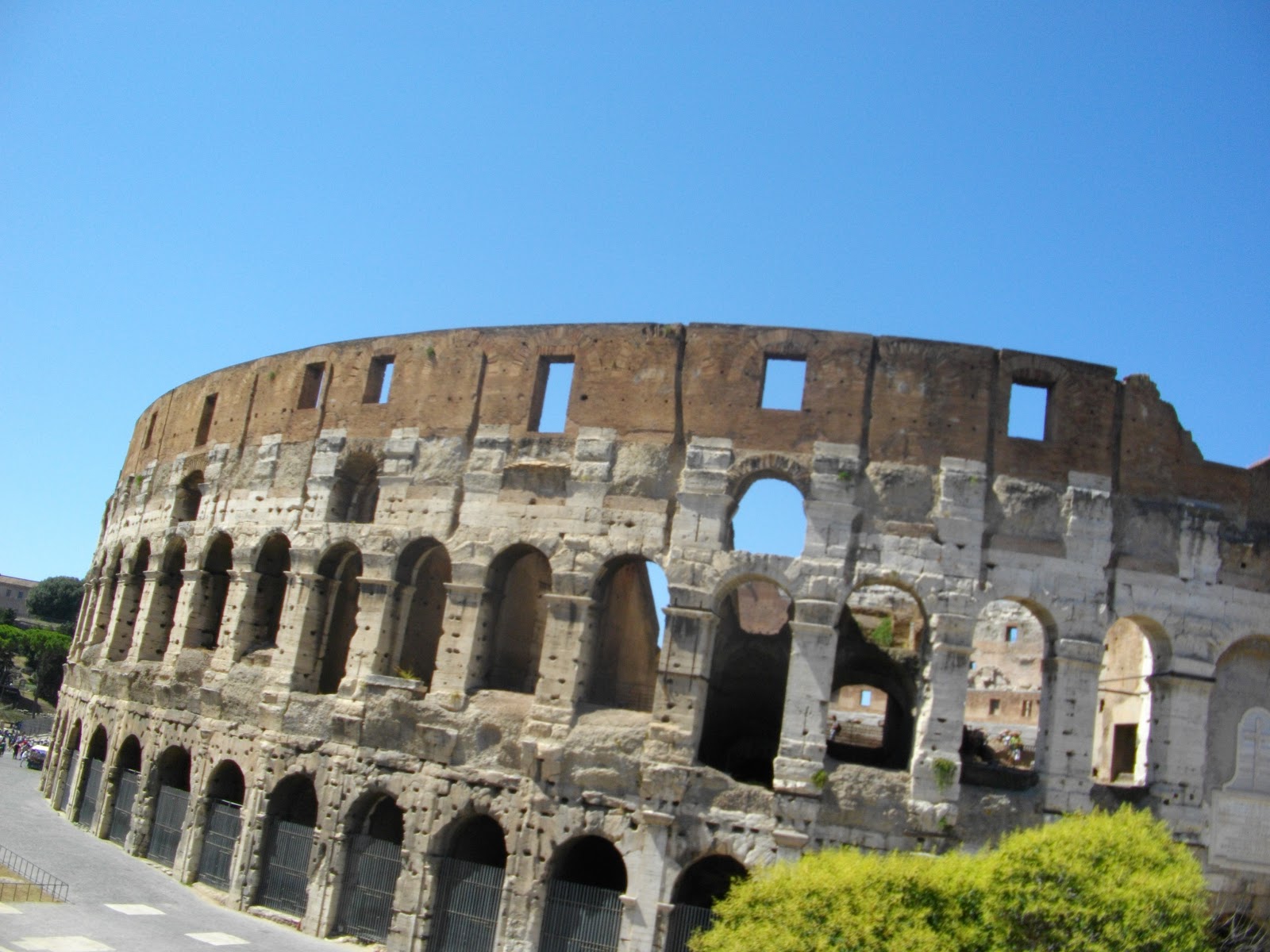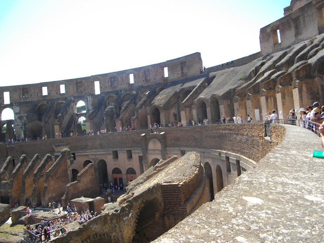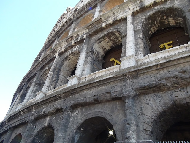 И вот, мы идём по Колизею. Колизей — самый большой из древнеримских амфитеатров, — один из знаменитых древних памятников древнего Рима и одно из самых примечательных сооружений в мире. Находится в Риме, в ложбине между Эсквилинским, Палатинским и Целиевским холмами, на том месте, где некогда был пруд, относившийся к «Золотому Дому» Нерона. Колизей первоначально назывался Амфитеатром Флавиев, потому что он был коллективным сооружением императоров династии Флавиев: Веспасиана, Тита и Домициана. Строительство велось на протяжении 5 лет, с 75-80 гг.
