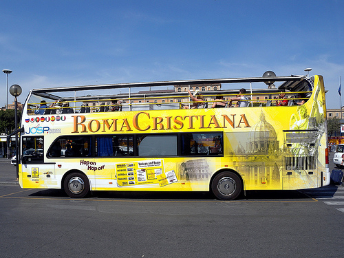 На любой остановке можно сойти и гулять «сколько душе угодно». Затем, на этой же остановки можно снова сесть на последующие экскурсионные автобусы фирмы Roma Cristiana – Opera Romana Pellegrinaggi, и ехать дальше. Экскурсионные автобусы ходят по Риму в течение 24 часов, и билет действует в течение этого же периода.