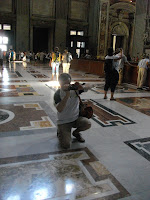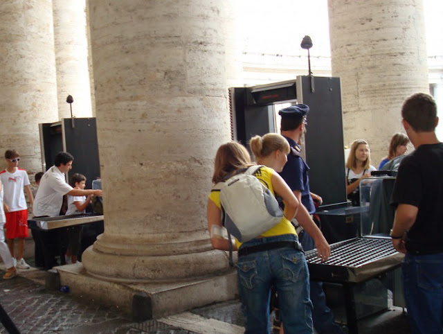 Проехали до станции Ottaviano-San Pietro. Вышли на поверхность города и направились в государство-город в пределах столицы Италии — Рима. Вот и мы пришли, отстояли огромную очередь и в итоге наших женщин развернули назад, из-за несоблюдения дресс кода. Когда шли к собору святого Петра, видели продажу на улице, ситцевых платьев. Вернулись и купили платья. Теперь нас всех пропустили в собор святого Петра. Ура!