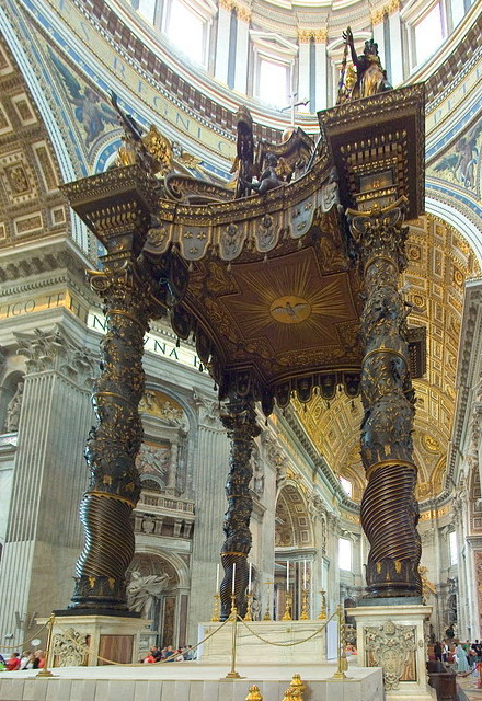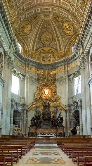 В центре собора возвышается алтарь с неугасимыми лампадами. Алтарь называется папским, поскольку служить перед ним мессу может только папа римский.
