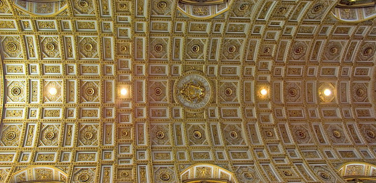 Громадный купол собора Святого Петра взмывает вверх словно поднятое ветром легкое полотнище. Его диаметр составляет 42 метра, и в Риме его называют «cupollone» («куполище»). По фризу купола и далее по фризу всей церкви идет мозаичная надпись по-гречески и по-латыни со словами Христа: «Ты — Петр, и на сем камне Я создам Церковь Мою, и не одолеют ее врата адовы; И дам тебе ключи Царствия Небесного; и что свяжешь на земле, то будет связано на небесах; и что разрешишь на земле, то будет разрешено на небесах».