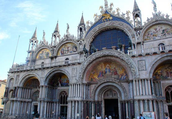 В соборе хранятся сокровища и реликвии, привезенные со всего света оборотистыми венецианскими купцами. В результате Сан-Марко превратился в настоящий музей средневекового искусства. Собор Сан-Марко являлся и центром общественной жизни Венеции. Здесь происходили все важнейшие государственные церемонии. Здесь посвящали дожей Венецианской Республики, здесь получали знаки своей власти венецианские флотоводцы и кондотьеры, здесь проводились общегородские молебны и торжества. “Viva San Marco!” — так звучал боевой клич венецианских войск, а сама Венецианская Республика в официальных документах, и в просторечии, нередко именовалась Республикой Сан-Марко. Венеция, расцвет которой приходится на XIII- XV века, долгое время политически и экономически была связана с Византией.