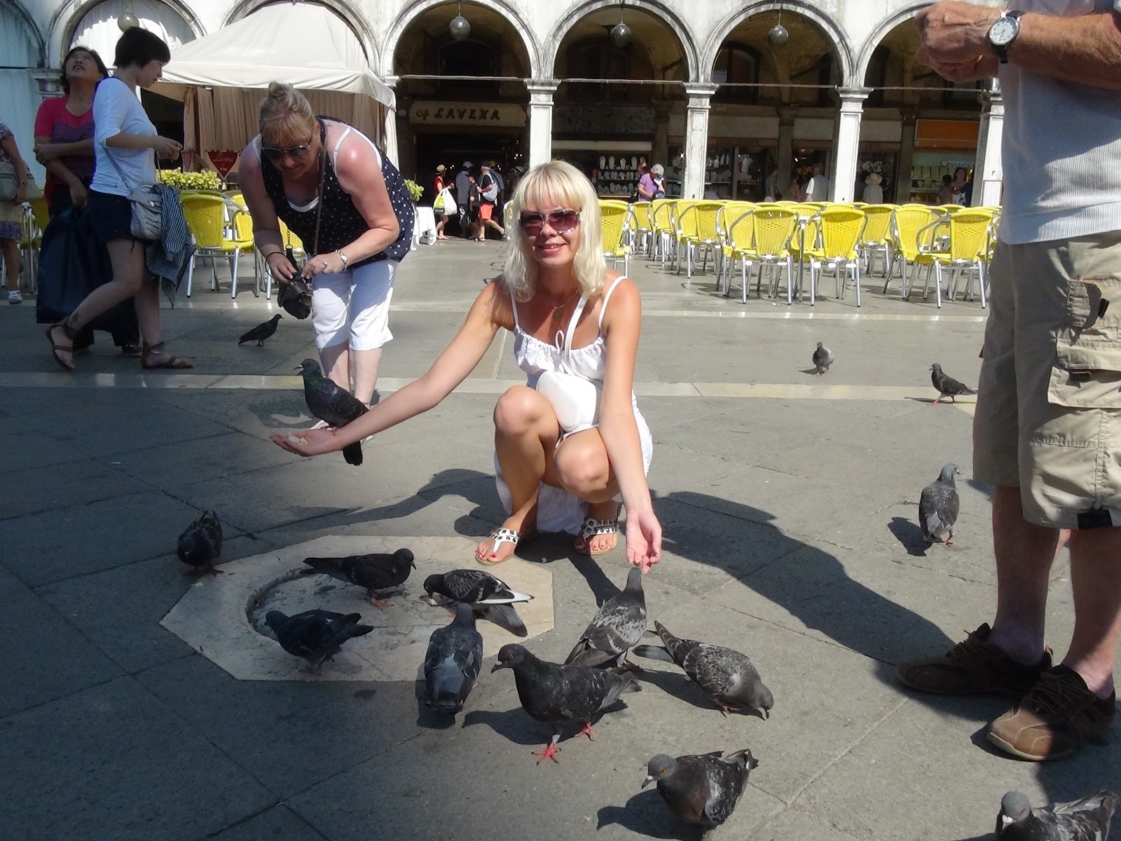 После прогулки по узким улочкам Венеции, выйдя к площади Сан-Марко захватывает дух от вида, открывшегося взору. Длина площади 175 метров. Сан-Марко имеет форму трапеции и поэтому в самой узкой ее части ширина 56 метров, а в восточной, более широкой 82 метра. А впереди Базилика святого Марка и дворец Дожей.