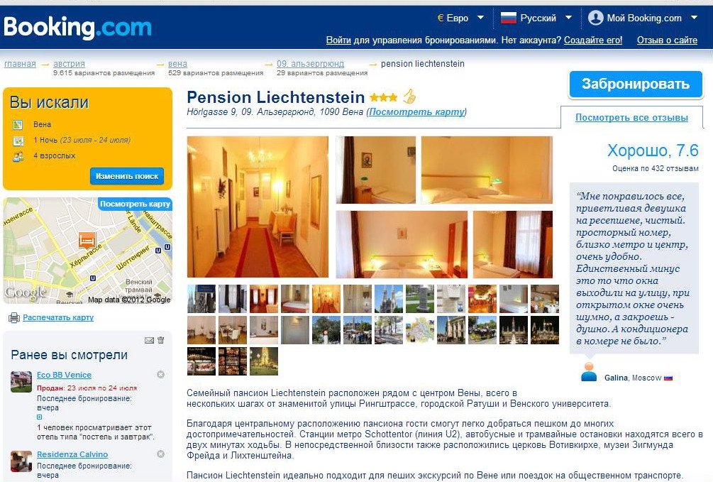 Для бронирования номера использовал сайт . Набрал запрос на этом сайте о нашем месте отдыха в Вене на 2013 год, видите всё продолжает существовать. Так что сайт замечательно выполняет свои функции. Очень здорово облегчает жизнь автотуристов.