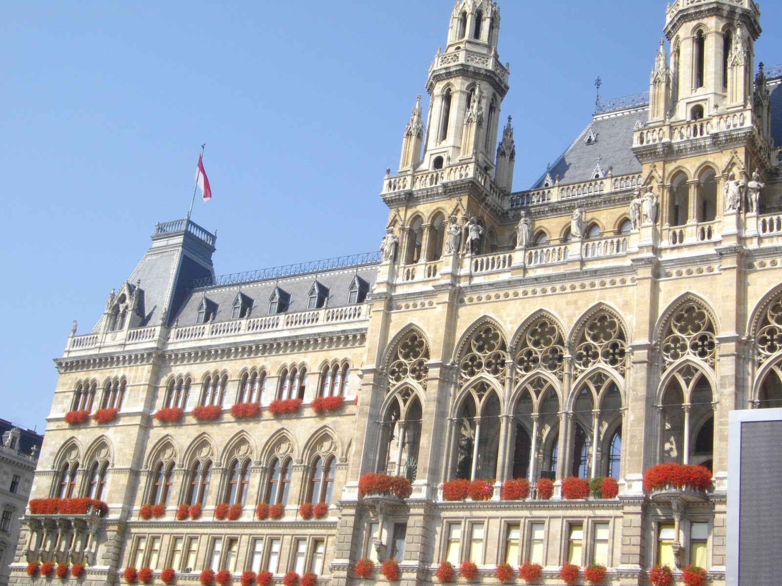 Построенная по образцу Брюссельского муниципалитета, Венская Ратуша (Wiener Rathaus) предстает на Ринге как одно из самых монументальных сооружений. Дворец Городской Думы был сооружен в 1872-83 гг. по инициативе бургомистра Кайетана Фельдера (1868-1878) по проекту архитектора Фридриха фон Шмидт, которого пригласили из Кёльна для строительства венского Собора св. Стефана. Над террасой ратуши возвышается центральная 98-метровая башня, а по обе стороны от нее четыре 61-метровые башни. На высоком шпиле, венчающем здание расположена платформа, с которой открывается прекрасный вид на город. Но для того, чтобы попасть на платформу нужно преодолеть 256 ступеней. Вершину башни украшает знаменитая фигура хранителя ратуши, ставшая символом Вены — фигура рыцаря в полном вооружении, её высота 3,4м (скульптор Александр Нер). В народе он ласково зовется «Rathausmann».