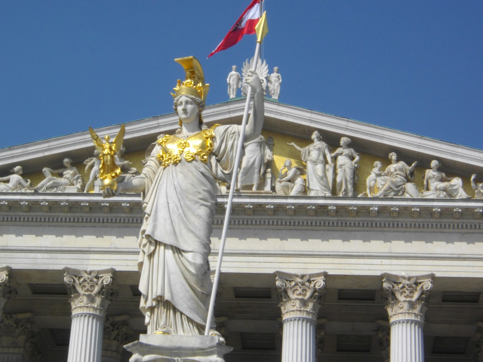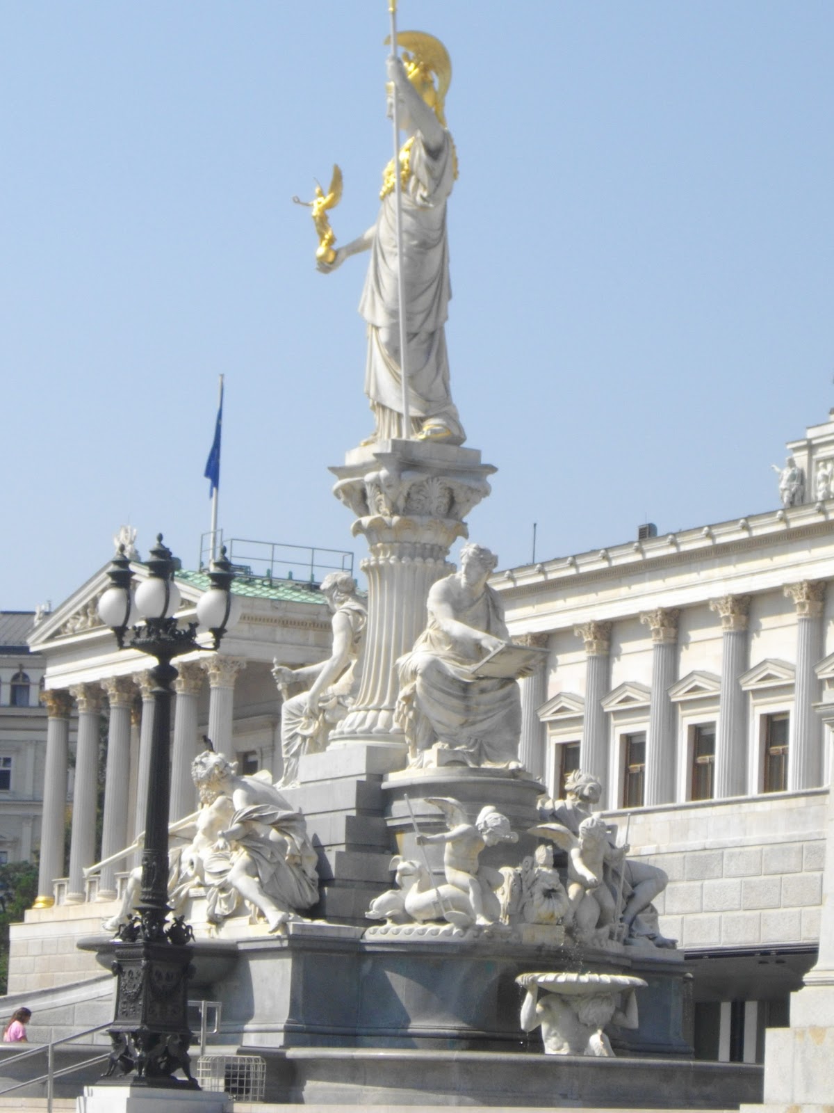 Здание парламента в Вене занимает площадь более тринадцати тысяч квадратных метров. Наиболее известной достопримечательностью здания является скульптурная композиция Афины-Паллады с фонтаном. Четыре полулежащие фигуры, расположенные спереди и сзади от пьедестала, являются аллегорическим представлением наиболее важных рек Австро-Венгерской монархии: Дуная, Инна, Эльбы и Влтавы. По сторонам пьедестала помещены купидоны на дельфинах. Женские статуи, расположенные выше, представляют законодательные и исполнительные органы власти.