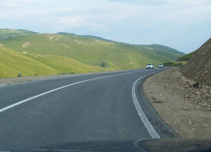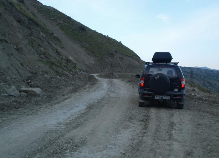 … а потом начинается спуск. Да, такой гладкий, что, сначала, сгоряча поддав газу, чуть не улетаю в скальную стенку. Никаких транспарантов, обозначающих условную границу с Чечней, не встречаю, но о том, что нахожусь уже на территории соседней республики, лучше всяких знаков свидетельствует великолепный асфальт, начавшийся резко, уступом поперек дороги.