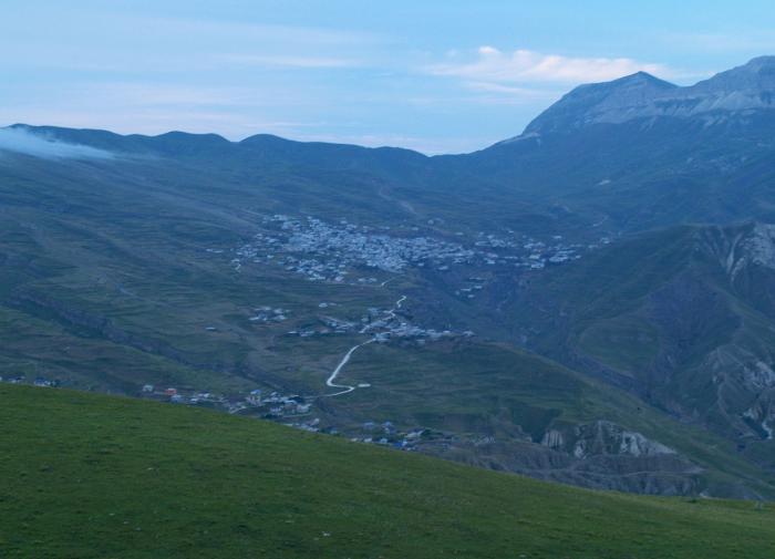 Вспоминаю о том, что все-таки еду в Ботлих, только тогда, когда через пару-тройку часов езды впереди появляется какое-то селение, живописно раскинувшееся на склоне горы.